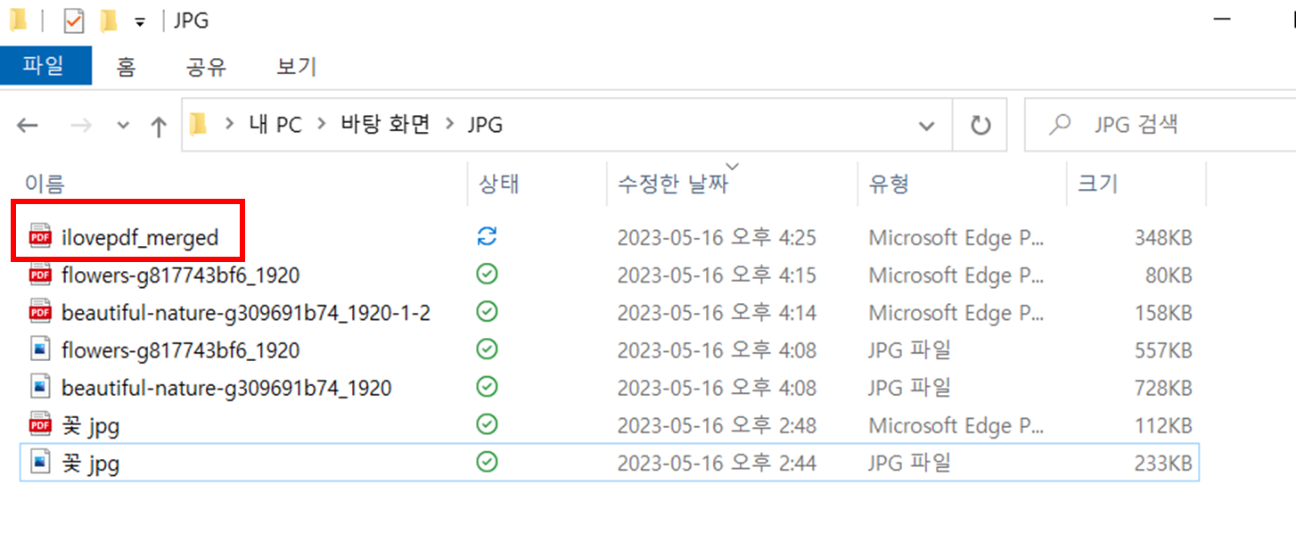 PDF로 합쳐진 파일이 생겼습니다. 참고로 merged는 합쳐졌다는 뜻입니다.