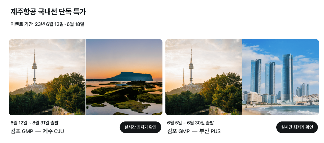 항공사별로 프로모션도 한눈에 확인해볼 수 있습니다. 해외여행을 계획하시는 분들이라면 최대 30%까지 할인된 가격에 이용하실 수 있습니다. 이벤트 기간이 얼마 남지 않았으니, 지금 바로 확인하세요!